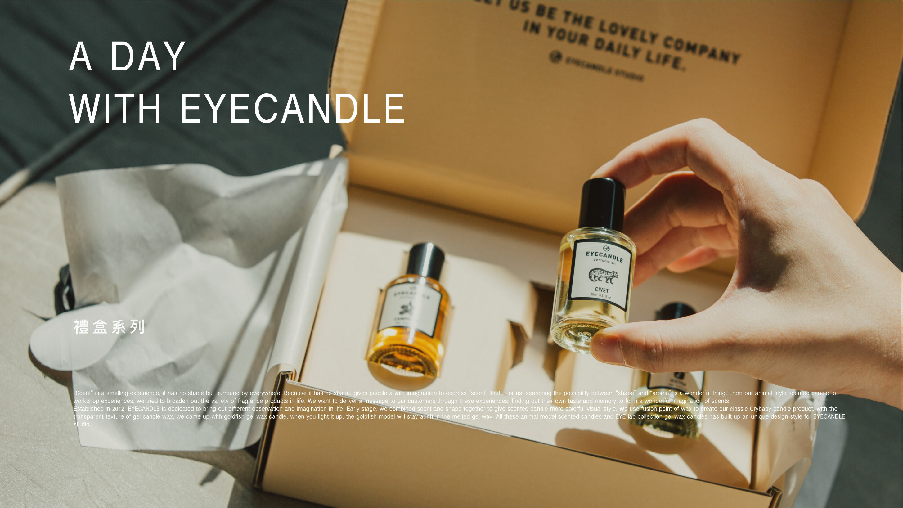 EYECANDLE 訂製禮盒選用日本白牛皮紙質搭配溫和色調,文字燙黑效果搭配炭黑色襯紙,給予平和低調的份圍,贈禮簡單大方又體面。