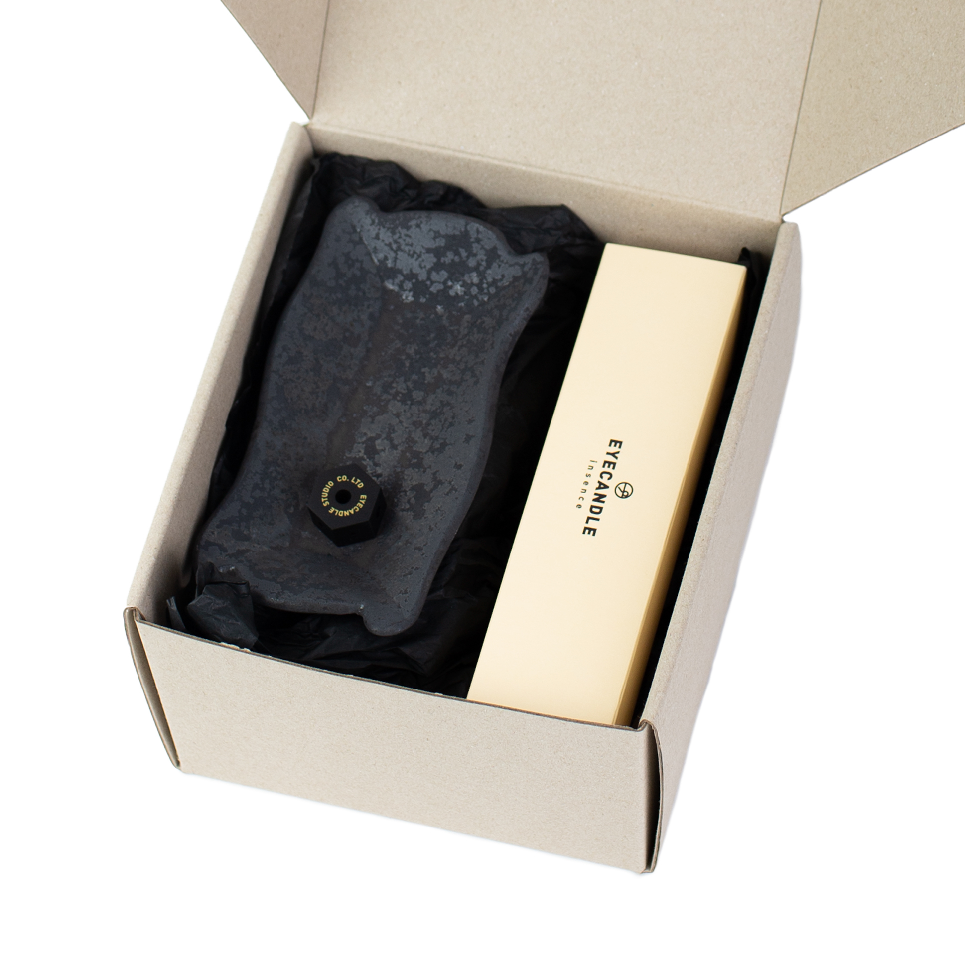 此次線香盤以紋飾切邊搭配 Object by 1218 自家深沉無光的黑鐵釉 Black,厚薄交錯的釉面黑與銀色結晶交錯,低調卻充滿細節,隨機出現的積釉紋理更增添豐富的層次。搭配金色抑或黑色線香座使用,也可成為飾品盤、鑰匙盤等居家器具。