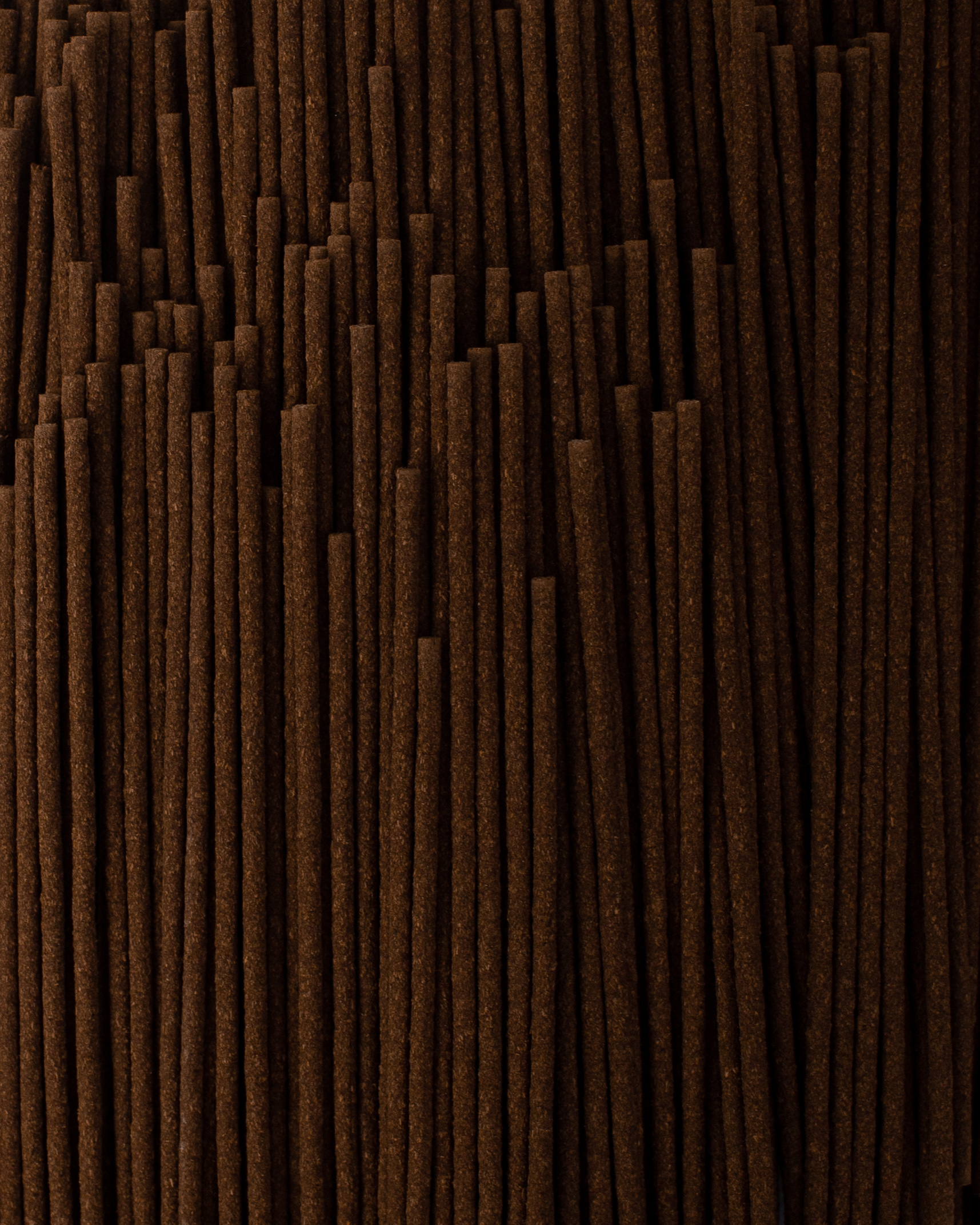 此款線香選用印度老山檀香作為基底,搭配宗教雪松香氛,製成長度 13.5cm 直徑 2mm 的纖細線香,使煙體柔和,輕盈持久。