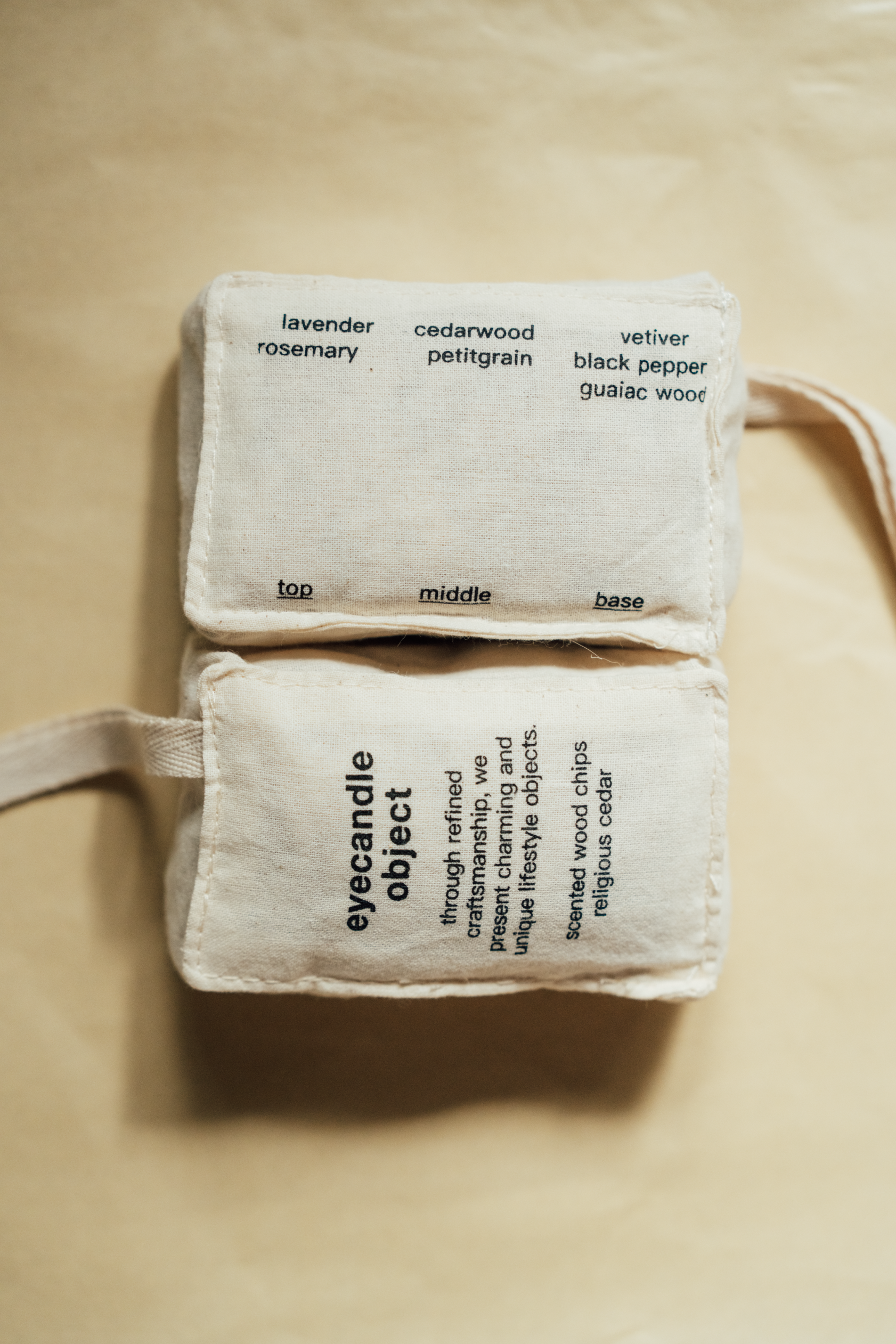 以天然杉木屑作為香氛袋基底,可吸附異味,掛置於小空間中,散發舒服的木質氣味